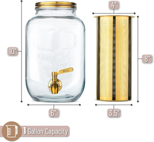 BTaT- Cold Brew Coffee Maker, 1 Gallon, Gold, Mason Jar Cold Brew Maker