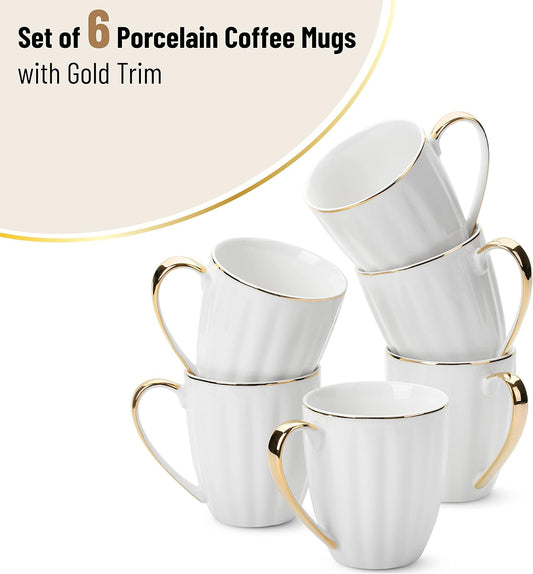 BTaT- White Coffee Mugs, Set of 6, 12oz, White Porcelain with Gold Trim Coffee Mug Set