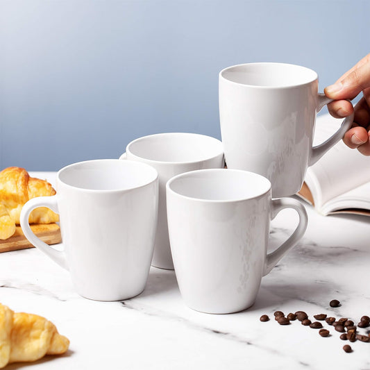 BTaT- White Coffee Mugs, Set of 4, 12 oz, Fine Bone China Porcelain