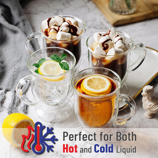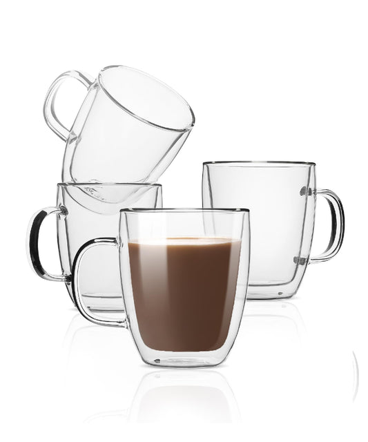 BTaT- Coffee Mug Set of 4 (12oz, 350ml) Double Wall Glass Coffee Cups
