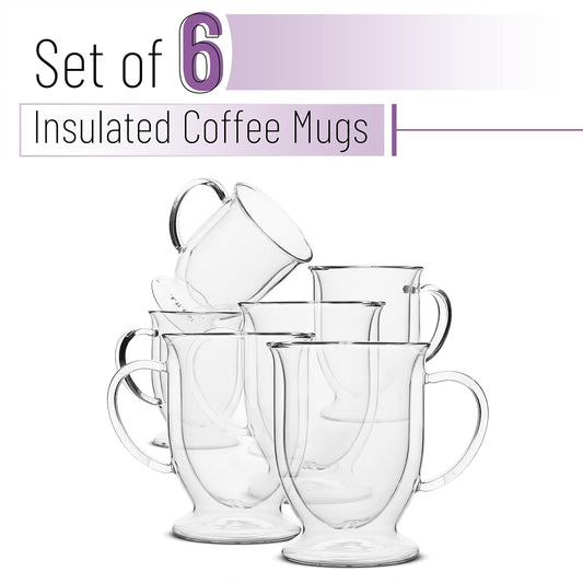 BTaT- Double Walled Glass Coffee Mugs, Set of 6, 12 oz, Double Wall Glass Coffee Mugs