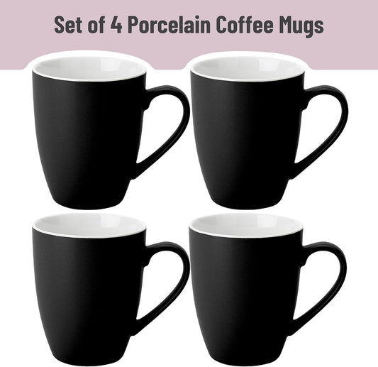 BTaT- Coffee Mugs, Set of 4, 16oz, Fine Bone China Porcelain, Black Coffee Mugs for Coffee Mug Set