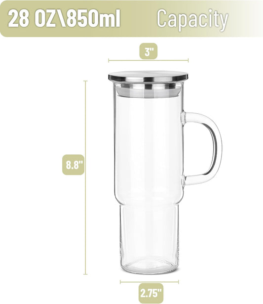 BTaT- Glass Cup with Lid, 28 oz, Drinking Glasses with Stainless Steel Lid, Glass Coffee Tumbler, Glass Iced Coffee Cups with Lids Reusable