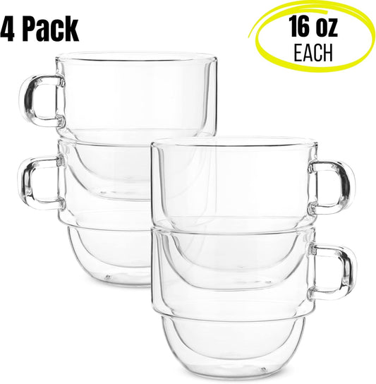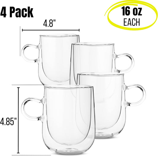 BTaT- Double Wall Glass Coffee Mugs, 16 oz (500ml), Set of 4, Double Glass Coffee Cups
