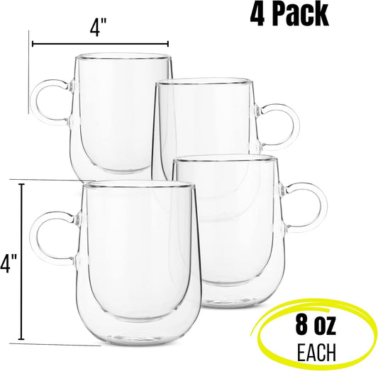 BTaT- Double Wall Glass Coffee Mugs, 8 oz (240ml), Set of 4, Double Glass Coffee Cups
