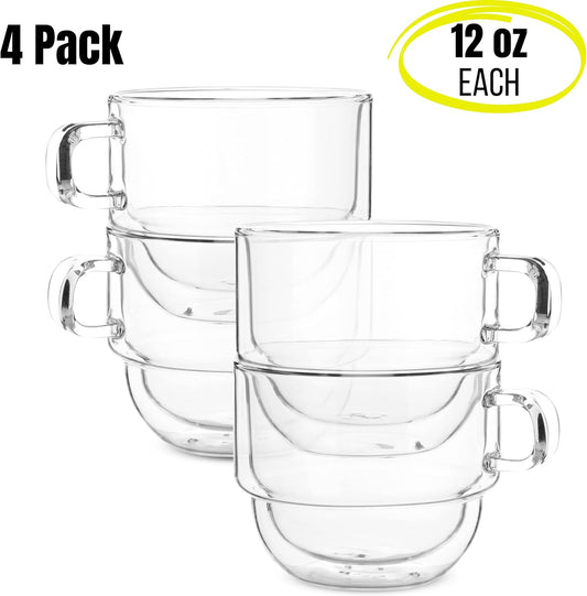 BTaT- Double Wall Glass Coffee Mugs, 12 oz, Set of 4, Double Glass Coffee Cups, Double Wall Coffee Mugs