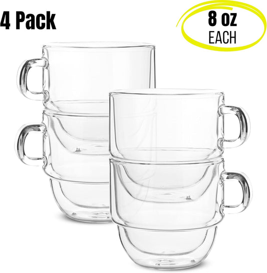 BTaT- Stackable Insulated Coffee Mugs, 4 Pack 8 oz(240 ml), Stackable Cappuccino Cups