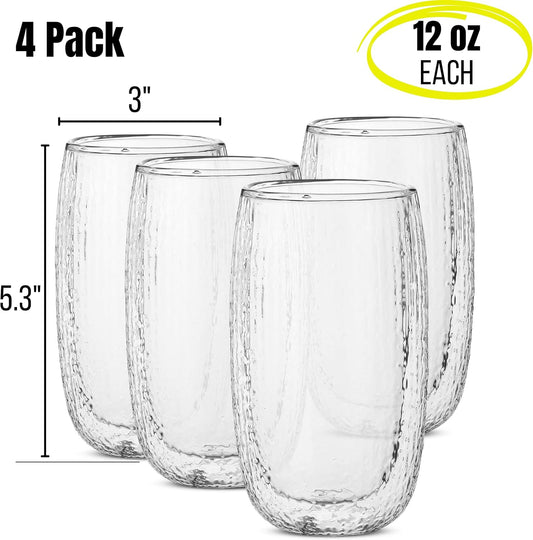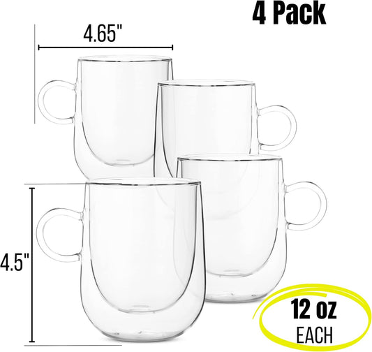 BTaT- Double Wall Glass Coffee Mugs, 12 oz (350ml), Set of 4, Double Glass Coffee Cups