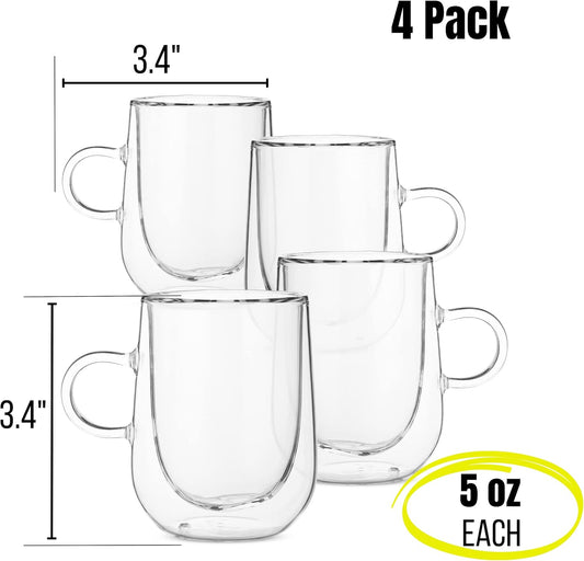 BTaT- Double Wall Glass Coffee Mugs, 5 oz (150ml), Set of 4, Double Glass Coffee Cups