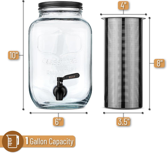 BTaT- Cold Brew Coffee Maker, 1 Gallon, Black, Mason Jar Cold Brew Maker, Cold Brewer Coffee Maker
