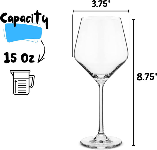 Btat- Wine Glass Set, Set of 12, 15 oz, Wine Glasses with Stem, Long Stem Wine Glasses