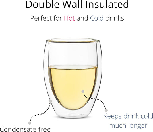 BTaT- Double Wall Wine Glasses, 4 Pack, 12 oz, Wine Glasses, Stemless Wine Glass, Double Wall Glass Cup