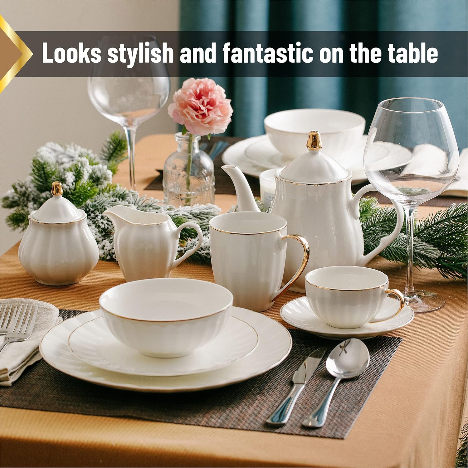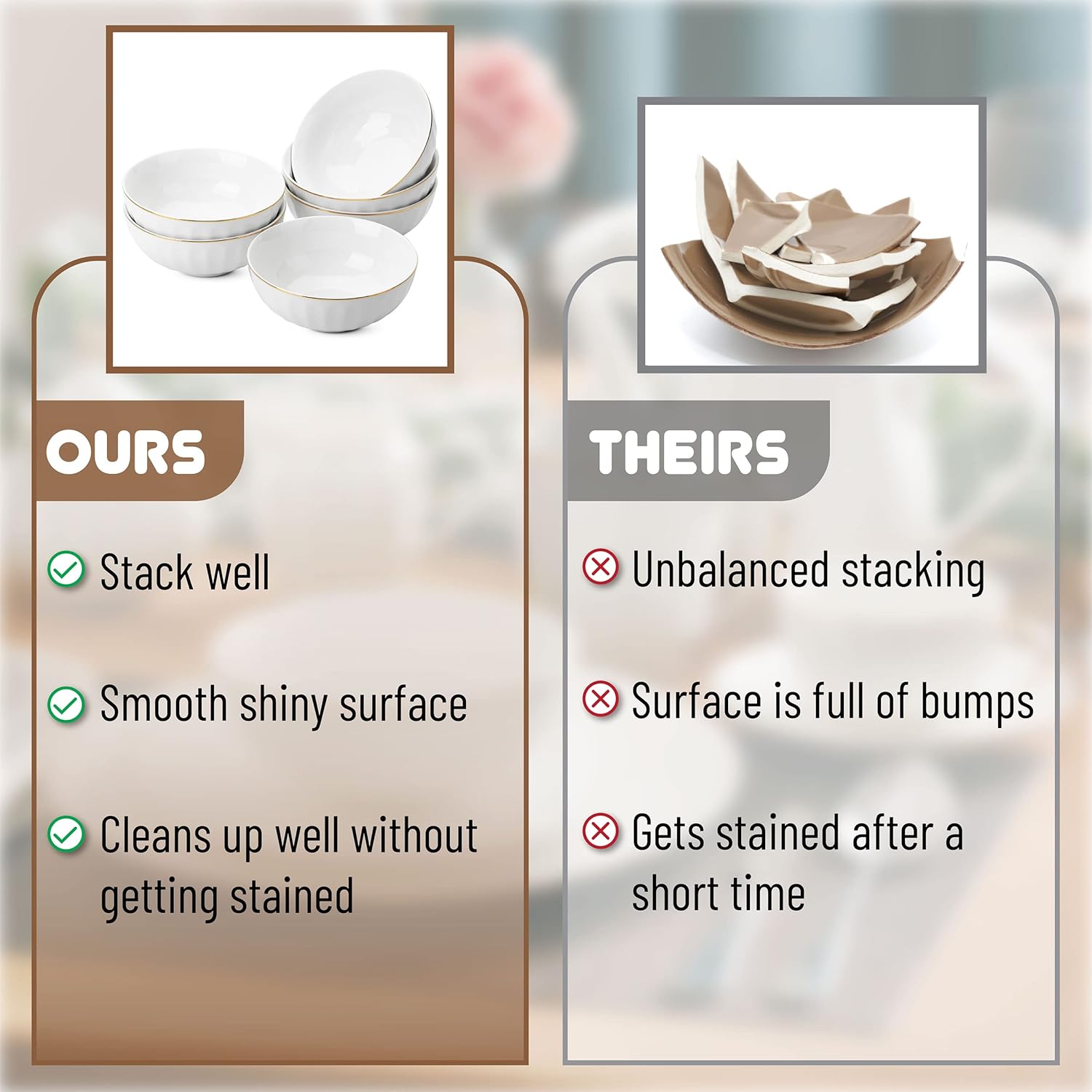 - Elegant design: BTaT bowls are made of high-quality white porcelain with gold trim, providing a classic and elegant look that complements any decor. The gold trim adds a touch of luxury to your dining experience.