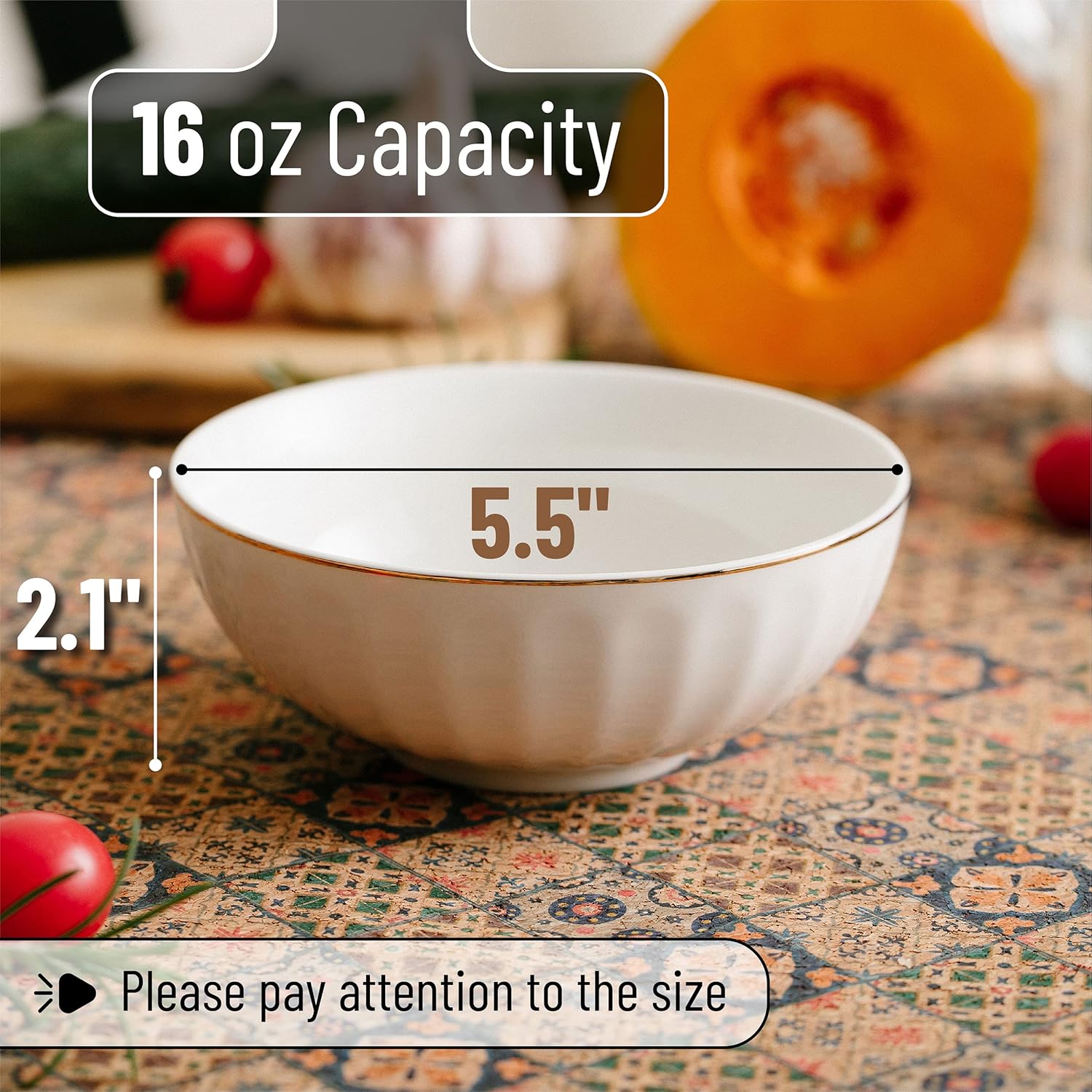 BTaT- White Porcelain Bowls with Gold Trim, 16 OZ, Set of 6, White Bowls Set of 6