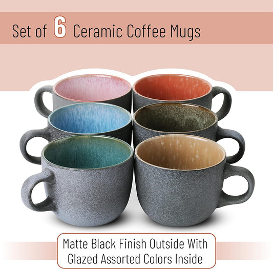 BTaT- Coffee Mug Set, Set of 6, 14 oz(415ml), Coffee Cup Set, Ceramic Coffee Cups