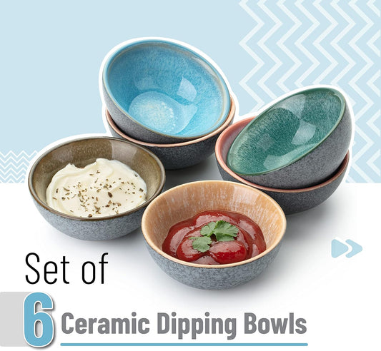 Brew To A Tea BTaT- Ceramic Dipping Bowls, 3.5 Oz, Set of 6, Colorful Small Bowls